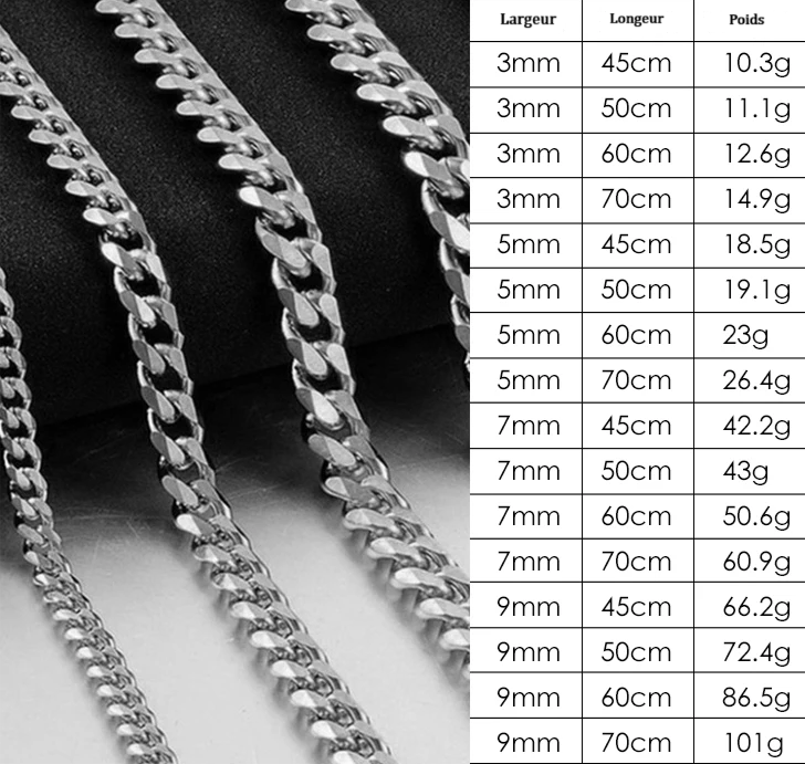 Collier Chaîne Cubaine Homme – Acier Inoxydable 5/7/9 mm