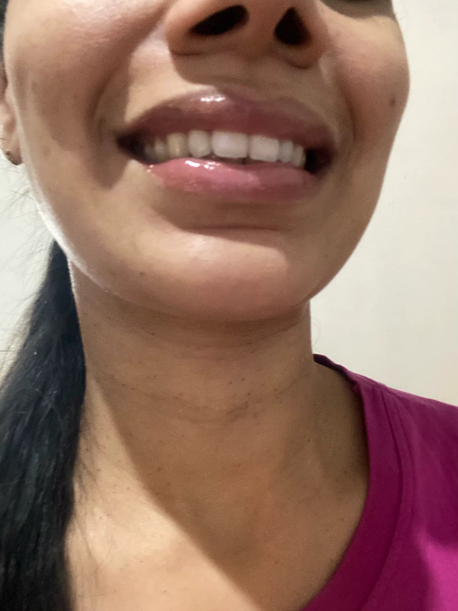 Très bel effet glow pour le prix !!! Sensation agréable sur les lèvres, non collant et sent super bon. Transparent avec une légère teinte.