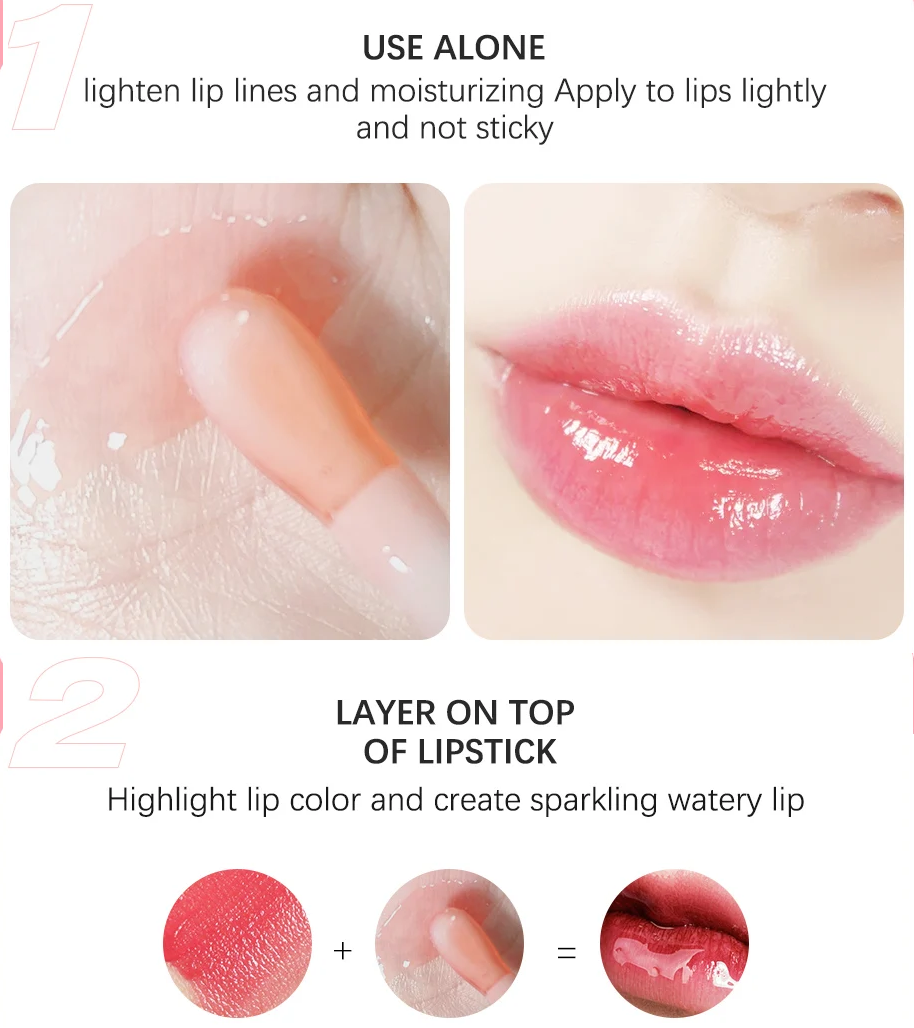 Par-dessus un rouge à lèvres : Met en valeur la couleur et ajoute un effet "lèvres mouillées" scintillant.